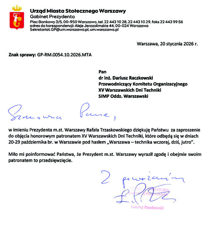 - Prezydent M. St. Warszawy Pan Rafał Trzaskowski