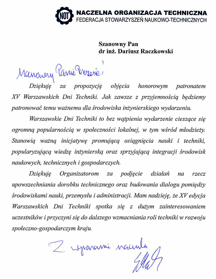 Z przyjemnością informujemy, że Patronat Honorowy nad XV WDT przyjęli: