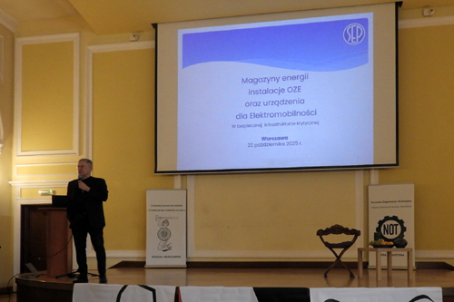 "Magazyny energii elektrycznej" przedstawił mgr inż. Radosław Gutowski ze Stowarzyszenia Elektryków Polskich.