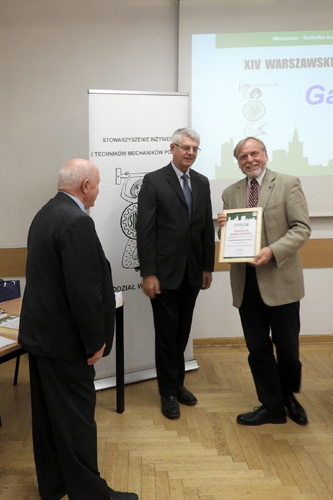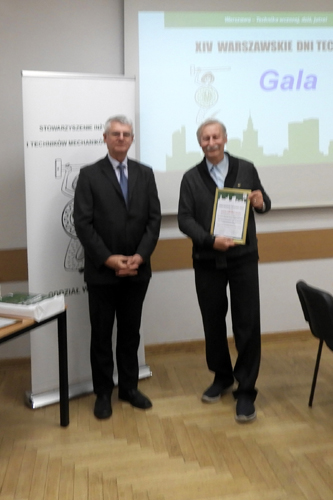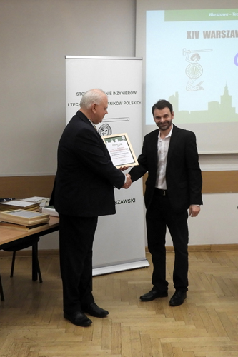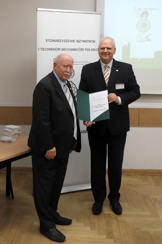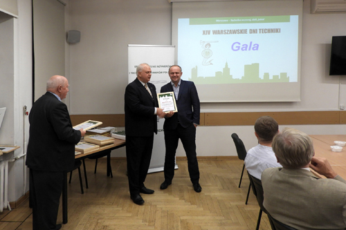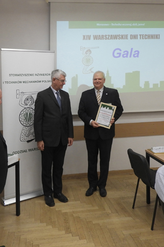 Dyplom Ambasadora Techniki prezesowi OW SIMP S. Staniszewskiemu wręczył przewodniczący Rady Stołecznej NOT p. Piotr Grzybowski.